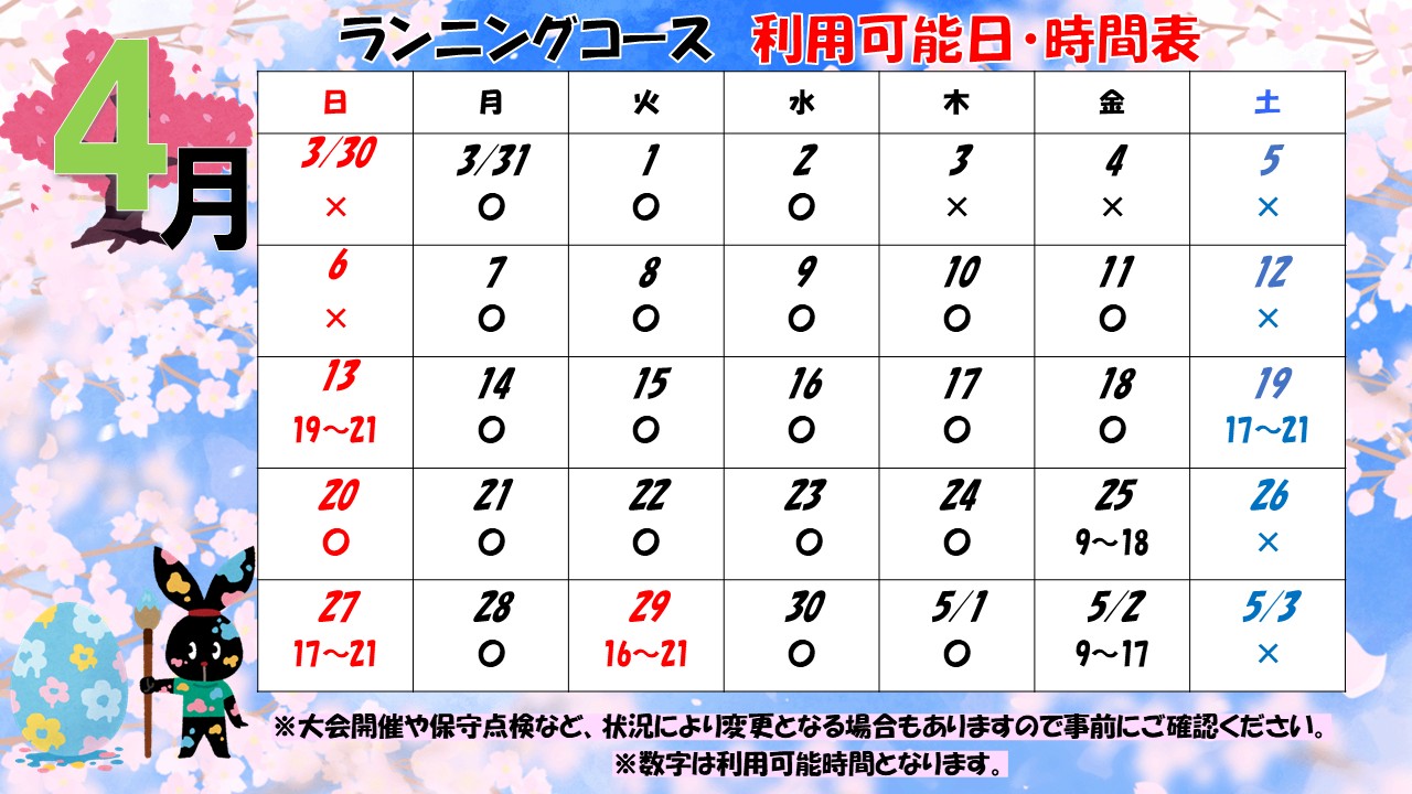 福島市トヨタクラウンアリーナ&NCVふくしまアリーナ 4月ランニングコースのご案内