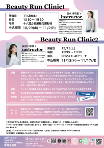 「Beauty ランクリニック」は、走ることをもっとおしゃれに楽しみたい女性のための特別なイベントです。正しいランニングフォームやケアに役立つストレッチを学べるのはもちろん、ランニングファッションやメイクのポイントまで知ることができます。走ることで体も心もリフレッシュしながら、自分らしいスタイルで輝けるのが大きな魅力。初心者の方も安心して参加でき、走る時間がぐっと楽しくなるはずです。美しさと健康を同時に叶える、新しいランニング体験を始めてみませんか?