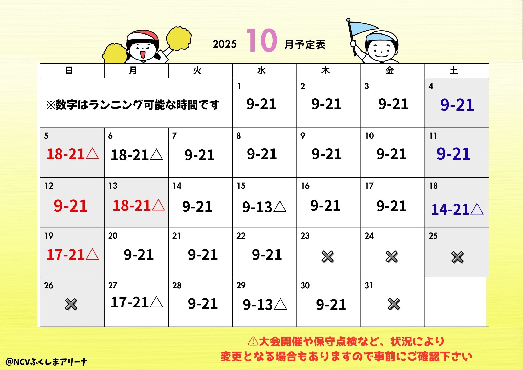 福島市トヨタクラウンアリーナ&NCVふくしまアリーナ 10月ランニングコースのご案内