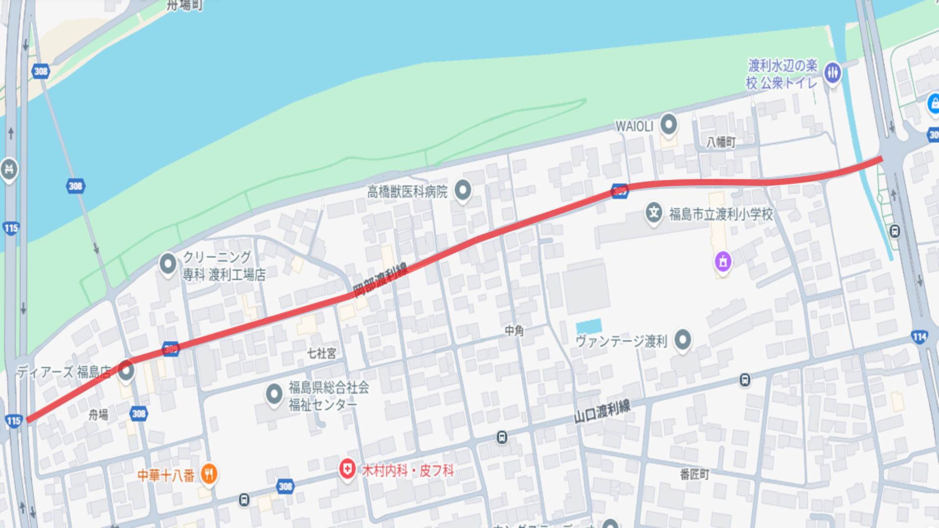 ③岡部渡利線(大仏橋付近~渡利大橋付近)