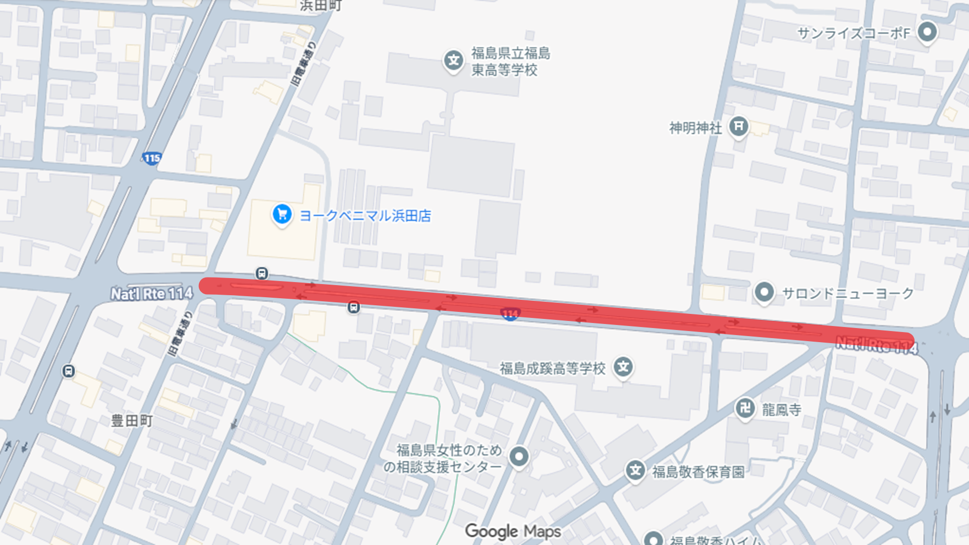 ④国道114号(渡利大橋付近~ヨークベニマル浜田店付近)