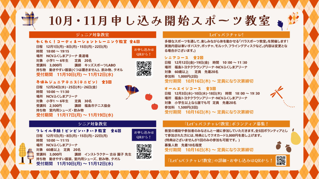 パラスポーツを体験することができる「Let’s パラチャレ!教室」も定員になるまで申し込みを受け付けております(先着順)。サポートボランティアも募集しております!詳細はこちらからご確認ください💫