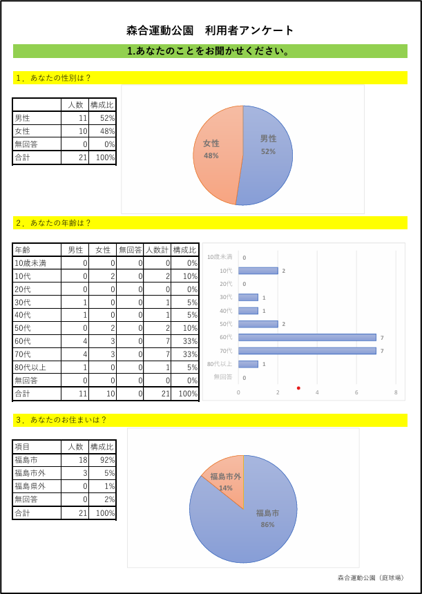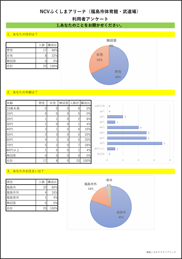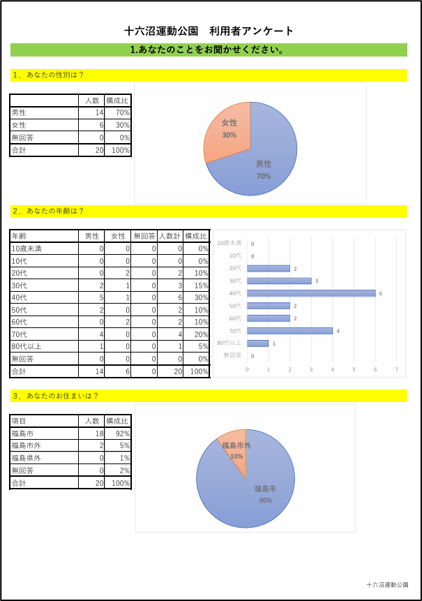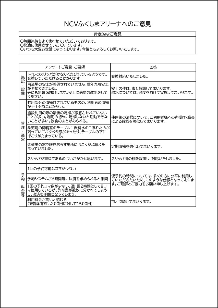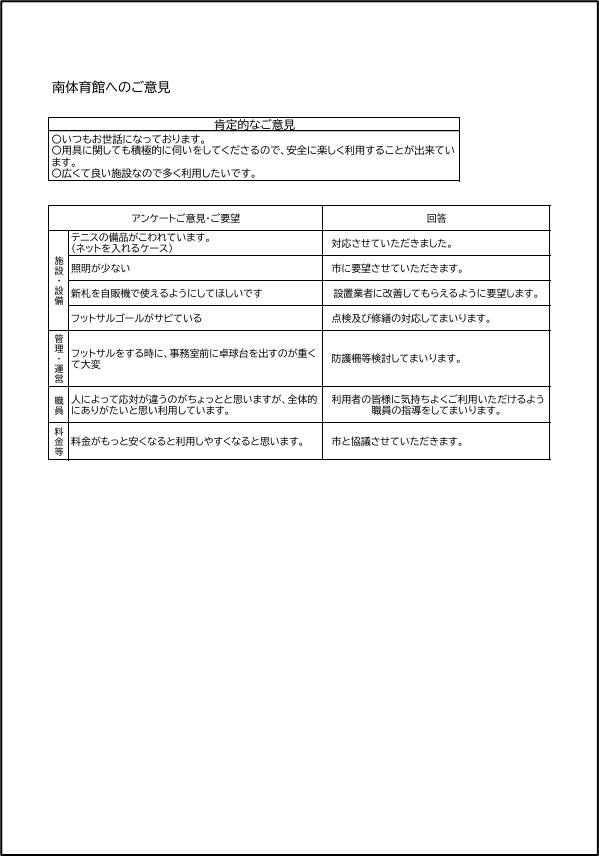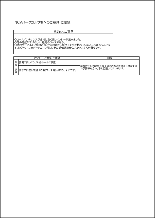 令和7年9月8日~9月30日の期間をアンケート調査強化期間として、当公社管理施設をご利用いただいている皆様にアンケート調査のご協力をいただきました。お褒めの言葉からご指摘やご要望等まで、たくさんのご意見をいただき、誠にありがとうございました。皆様からいただきましたご意見を今後の施設管理運営に反映させつつ、ますます皆様に気持ちよくご利用いただけますよう、より一層の努力をしてまいりますので、今後とも何卒よろしくお願いいたします。