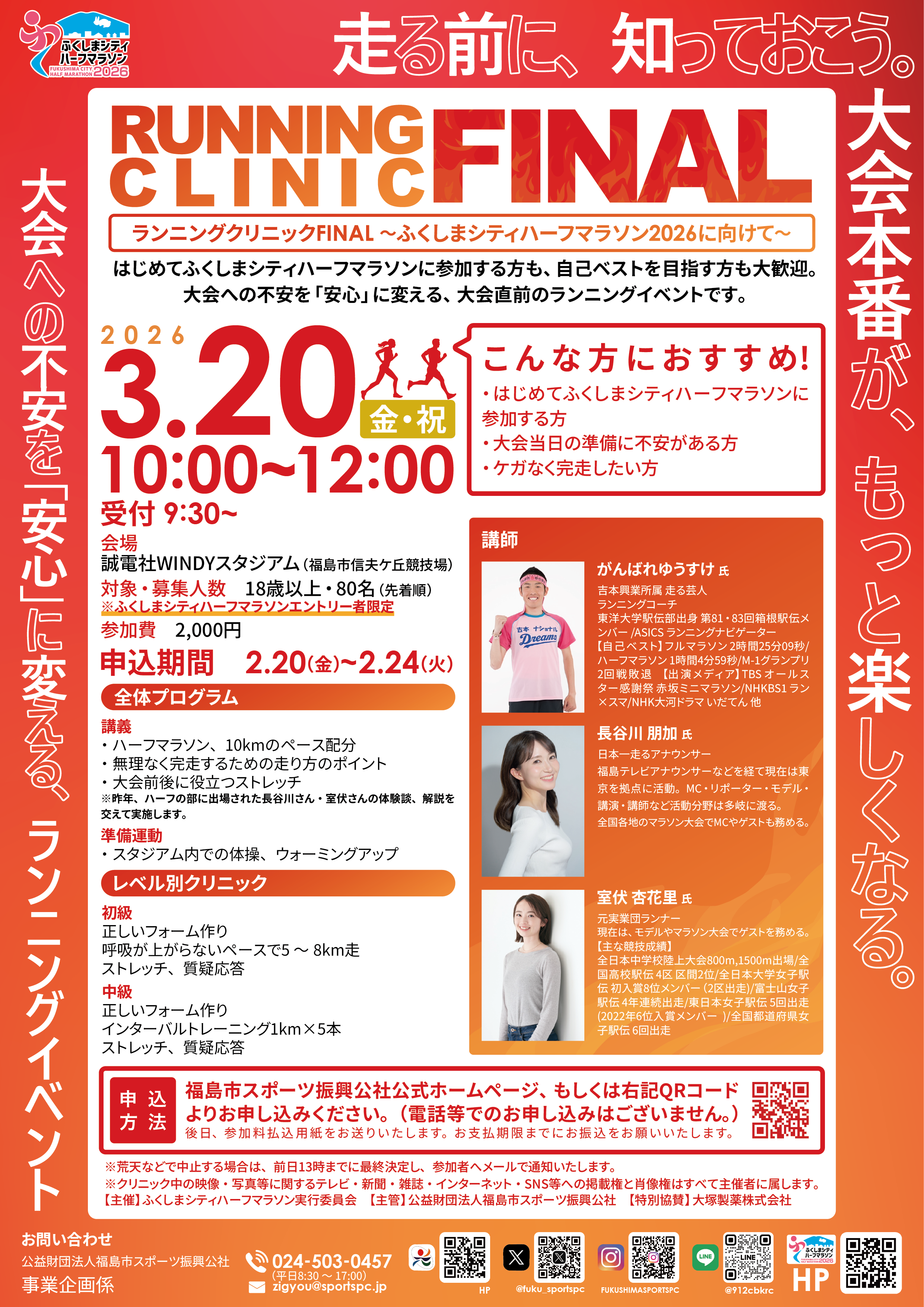 参加対象: 18歳以上の健康な男女(ふくしまシティハーフマラソン2026 エントリー者のみ)