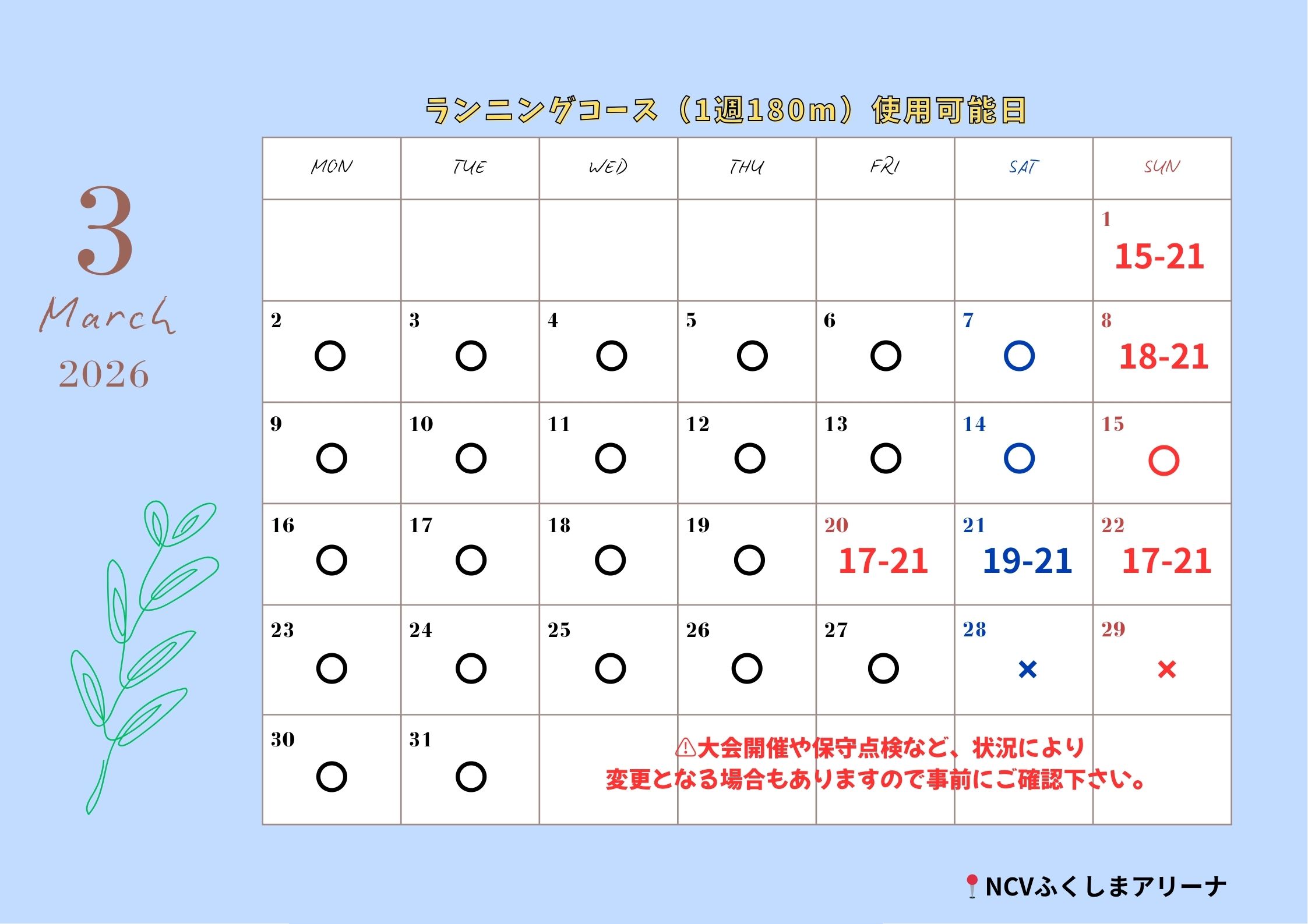 福島市トヨタクラウンアリーナ&NCVふくしまアリーナ 3月ランニングコースのご案内