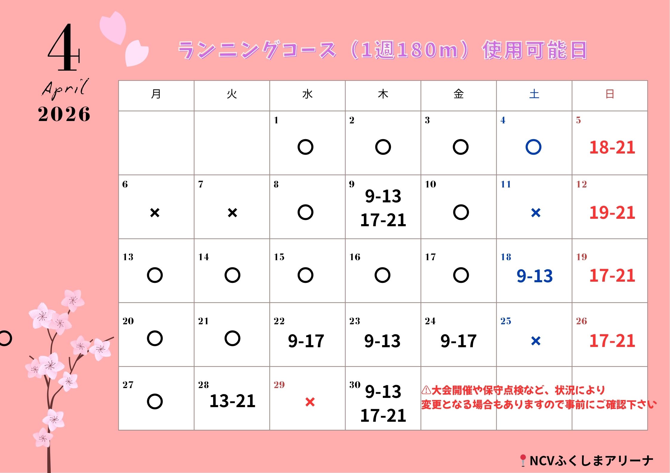 福島市トヨタクラウンアリーナ&NCVふくしまアリーナ 3月ランニングコースのご案内