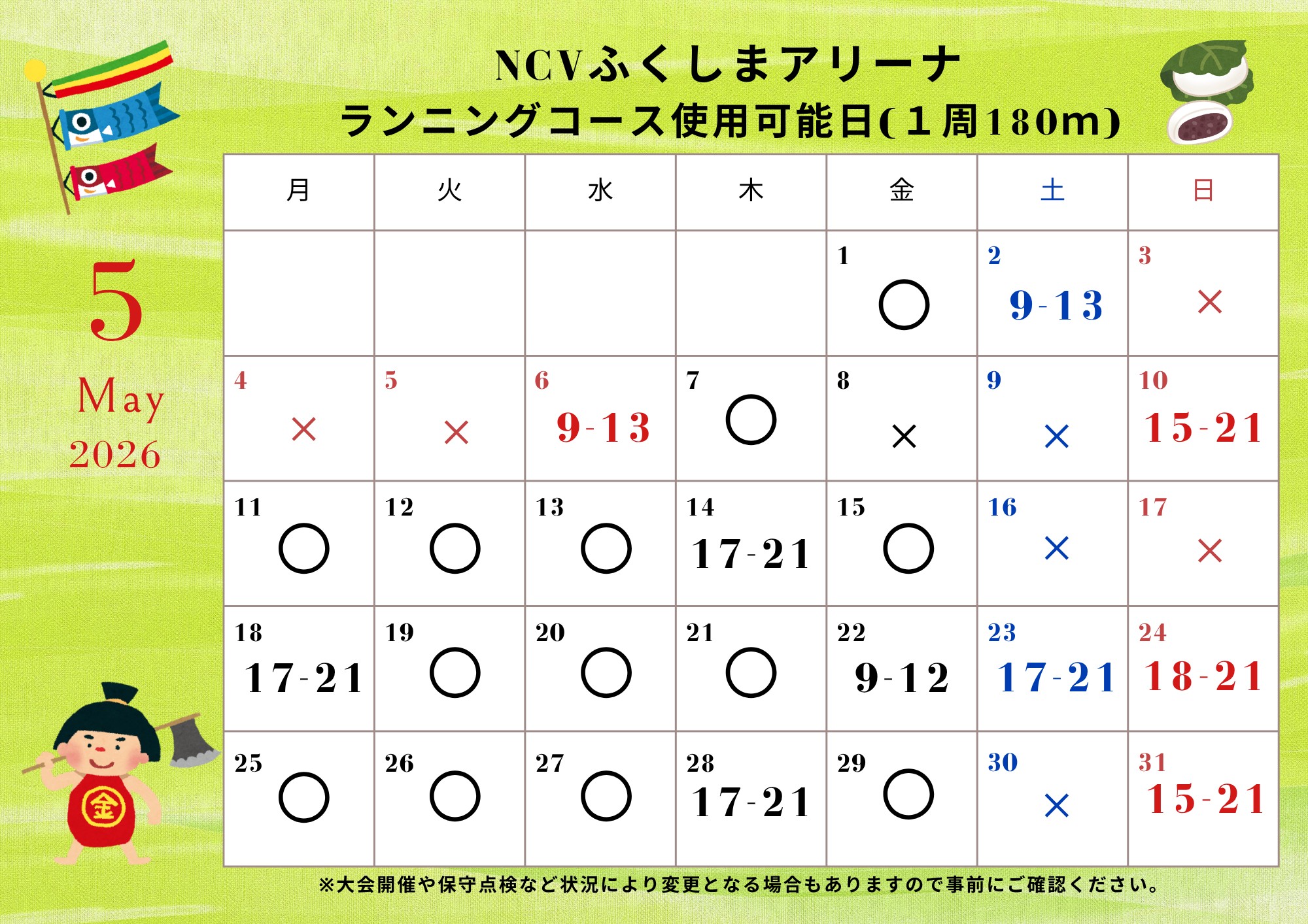 福島市トヨタクラウンアリーナ&NCVふくしまアリーナ 5月ランニングコースのご案内