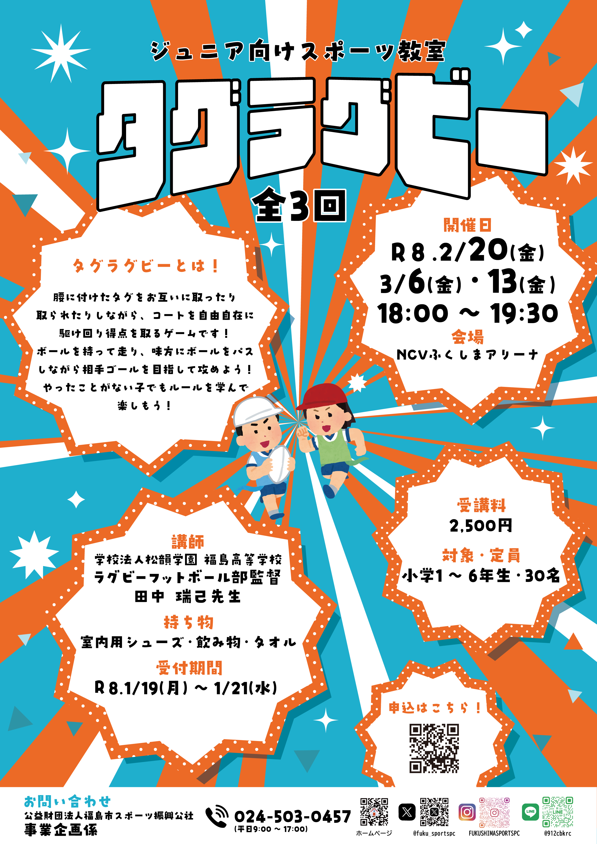 ※詳しくは、公益財団法人福島市スポーツ振興公社 事業企画係 までお問い合わせください。